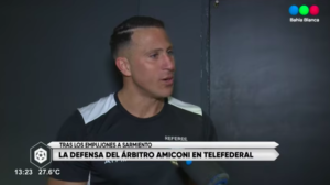 El colegiado oriundo de 25 de Mayo rexpresó: “Cuando se ve que (Sarmiento) cae al piso, fui el primero que me quise morir porque uno no busca eso. Uno lo que busca es tratar de pasar desapercibido, con errores.. Pasa que lo que vende esto es parte del negocio, es decir, árbitro golpeador quiso increpar a un jugador. Verdaderamente estuve lejos de eso. Atrás de la investidura de árbitro, hay una persona y atrás de esa persona, hay una familia. Es como que yo me ponga a decir de vos que me gustás o no me gustás como periodista, estaría perfecto. Pero diferente es decirte que vos estás loco de la cabeza, esa parte no me corresponde. Me parece que se tendría que poner en el lugar del periodista que decir ‘Amiconi dirige muy mal, que no venga más a Bahía‘.”