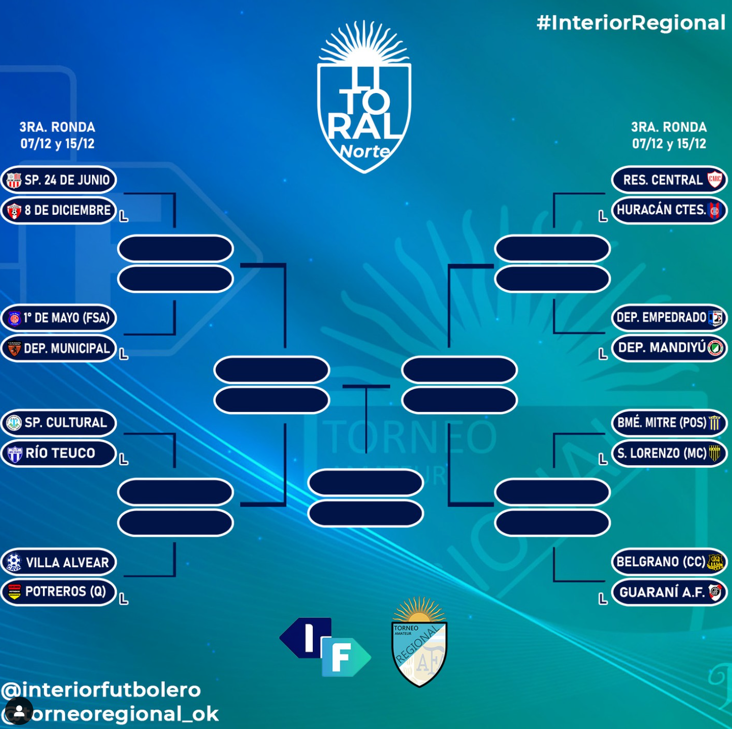 A continuación, de la mano de @torneoregional_ok se detallan los cruces de las zonas restantes. Es preciso remarcar que los equipos que poseen una “L” serán locales en el primer partido.
