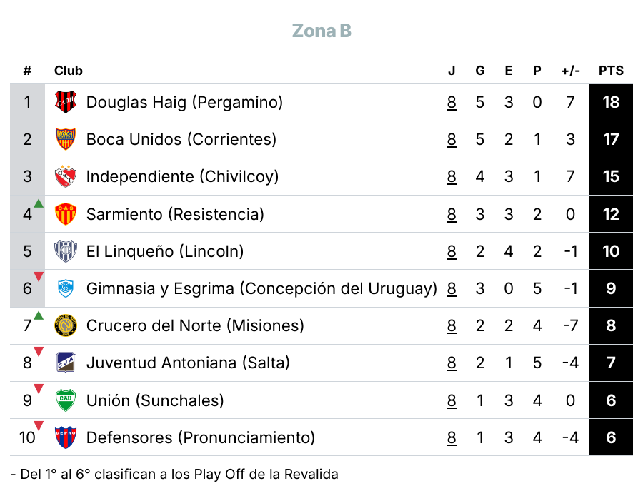 CRUCERO DEL NORTE (Posadas) (23 pts en la general): Visita a DEPRO que solo le sirve ganar. El Colectivero depende de si mismo. El empate o victoria lo salvan y hasta tiene chances de clasificar a la siguiente etapa de la reválida. La derrota lo lleva a esperar resultados. Si bien podría salvarse si Unión pierde y Gimnasia no gana, también podría ir a un desempate vs Gimnasia CDU (en 23) o triple desempate (sumando a Unión Sunchales).