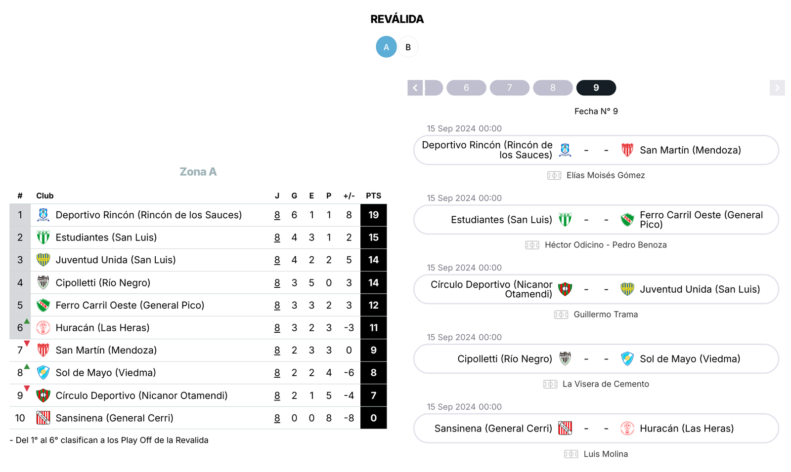 Por su parte, Juventud Unida de San Luis (14pts en reválida) que visita a Círculo, también se juega la posibilidad de quedar como segundo de la reválida sur, o bien pelear ser mejor tercero (Independiente de Chivilcoy tiene 15 en reválida).