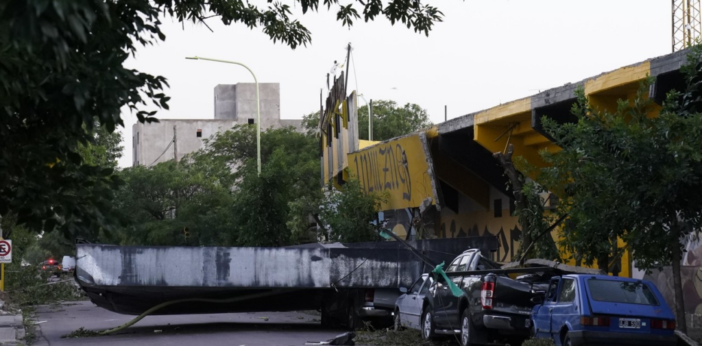 En uno de los clubes representativos de la ciudad, Olimpo, cayó una pantalla LED sobre la calle Ángel Brunel, causando daños severos en los autos que se encontraban estacionados ahí.
