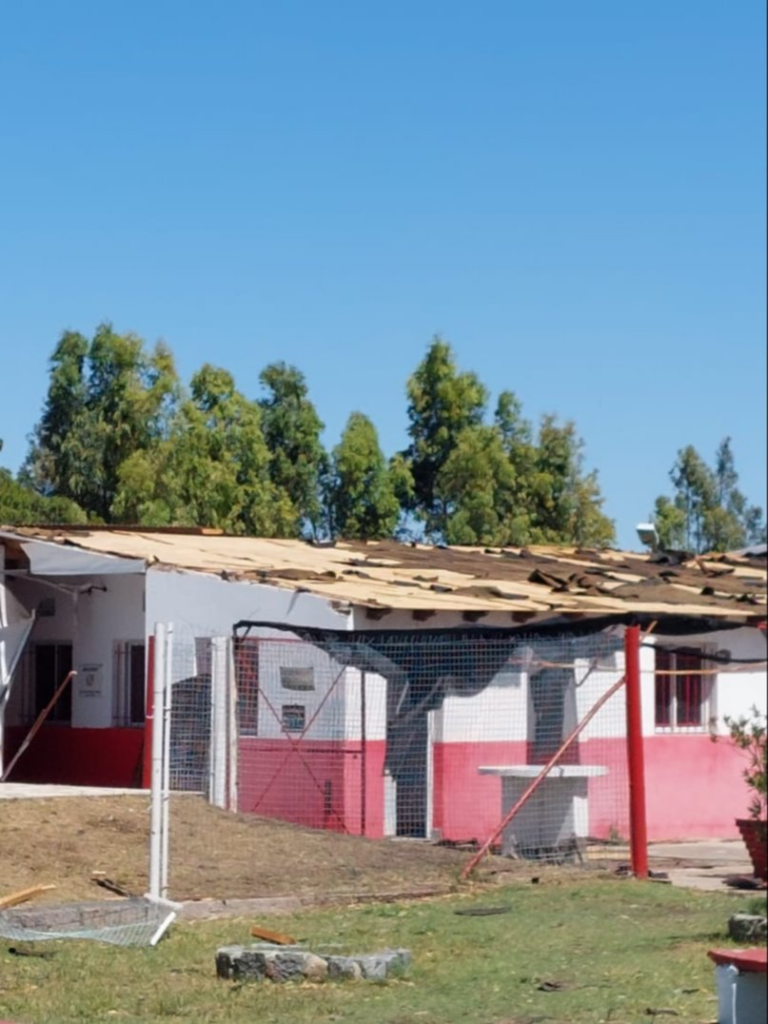 Ingeniero White, perteneciente al partido de Bahía Blanca, también soportó la furia de la naturaleza. Entidades como Puerto Comercial y Huracán vieron destrozos en paredes y quinchos.