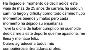 Cárdenas dio por finalizada esta gran etapa agradecido por todo lo vivido, reflejando lo difícil que han sido algunos momentos pero feliz por haber cumplido su sueño y de esta manera lo expresaba: