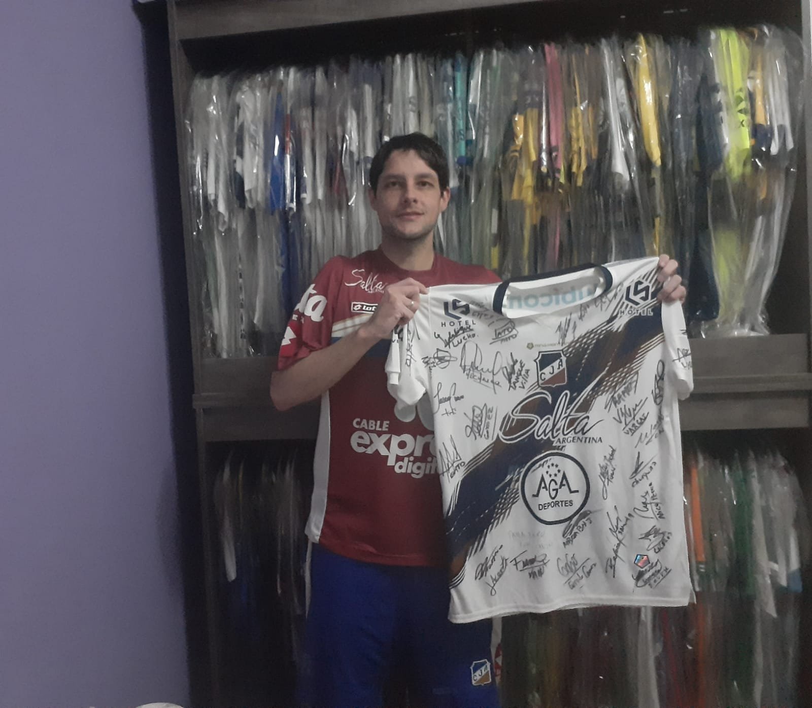 “Tengo más de 100 camisetas de Juventud Antoniana, ya perdí la cuenta del número exacto. No me entran más camisetas en mi casa, en total tengo más de 400”, expresó el capitalino que se hizo hincha del “santo” ya que su padre era salteño, hincha y socio del club y fue quien le transmitió la pasión por los colores. Entre tantas, su preferida es la del “Pichi” Miguel Velarde, quien le obsequió una “casaca” utilizada en juego en la temporada 2005.