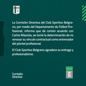 Este domingo por la tarde, el departamento de fútbol profesional de Sportivo Belgrano dio a conocer que Carlos Mazzola no renovará su vínculo con la institución.