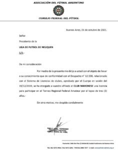 De la misma forma, fue confirmada también la licencia para el Club Atlético Maronese de Neuquén.