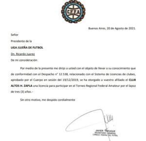 En esta oportunidad se les concedió las licencias deportivas a FADEP, 9 de Julio (Rafaela), Sportivo Ben Hur y Altos Hornos Zapla.
