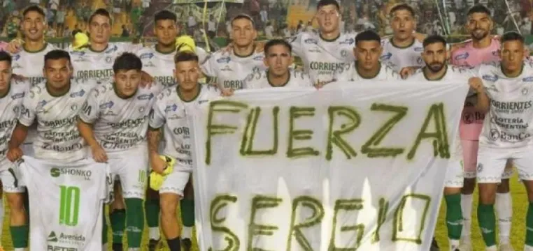 En el último partido que Mandiyú disputó como local, el plantel posó con una bandera con un mensaje dedicado al jugador.