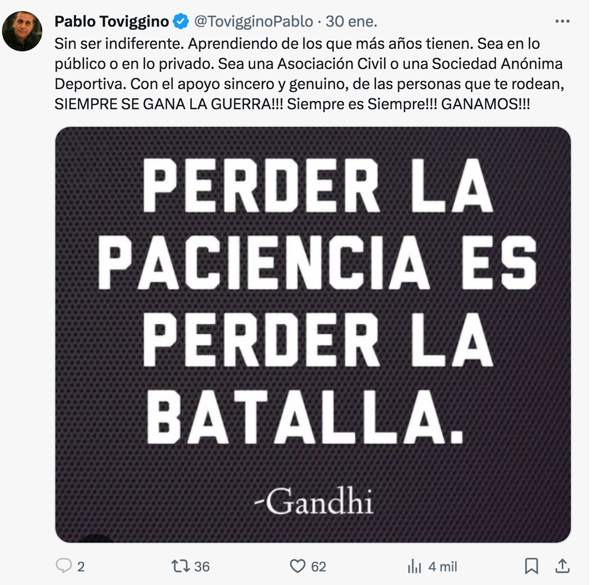 El Twit de Pablo Toviggino (Presidente del Consejo Federal)